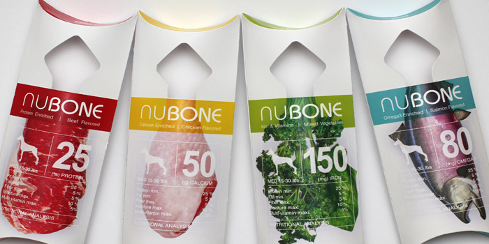 Brandul NuBone ofera suplimente nutritive pentru caini. Compania a venit cu ideea de a  imbunatati comunicarea vizuala dintre utilizatori (in acest caz detinatorul patrupedului) si produs.