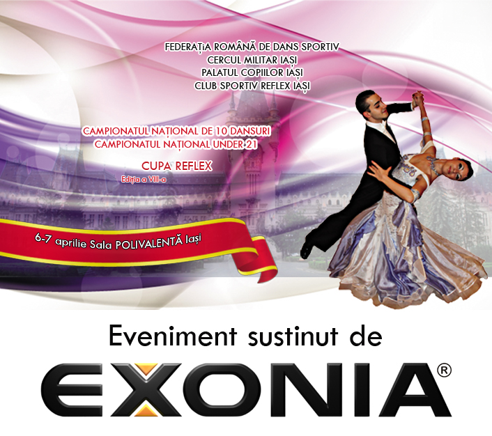 Fabrica De Ambalaje Exonia Holding sustine o noua editie a „Campionatului de Dans Sportiv Cupa Reflex IASI”, un eveniment drag companiei noastre. Prin programul „ELITIS sustine performanta” compania noastra si-a propus sa sprijine dezvoltarea comunitatii si a tinerilor care fac performanta in diferite domenii de activitate.