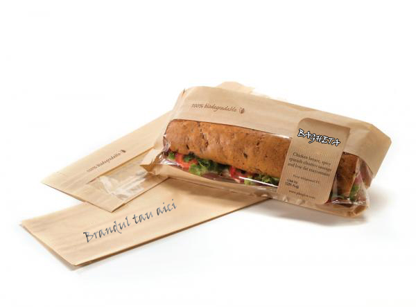 Punga de hartie cu fereastra pentru baghetaPainea este printre cele mai consumate alimente din Romania si ar merita sa aiba printre cele mai remarcabile ambalaje. Pentru painea tip bagheta, pungile de hartie cu fereastra bopp sunt cele mai potrivite ambalaje. In astfel de pungi, produsul se mentine proaspat mai mult timp si poate fi ambalat „la cald”. Painea ambalata in pungi de hartie este atractiva pentru ca activeaza in consumator ideea de prospetime, produs cald si chiar aminteste de stilul de viata al vest-europenilor.
