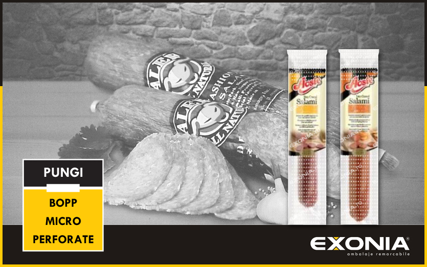 Pungi bopp microperforate pentru mezeluriPungile BOPP (polipropilena) microperforate pentru ambalarea mezelurilor sunt ambalaje flexibile utile producatorilor de salamuri, carnati sau alte preparate crud-uscate. Pungile BOPP microperforate sunt destinate ambalarii produselor care au nevoie sa „respire”, asa cum este si cazul mezelurilor crud-uscate.